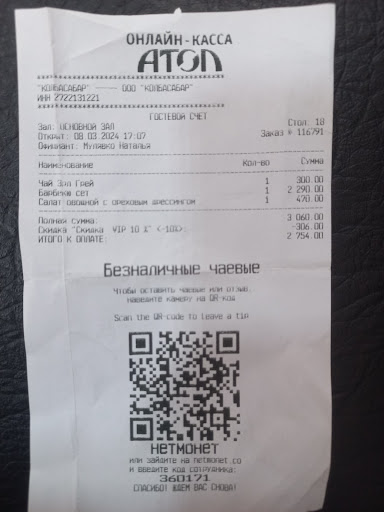 Read moreКухня нормальная, обслуживание никакое, абсолютно портит все впечатление, официанты не обращают внимание на стойку раздачи. Только через пол часа выяснилось, что напитков нет, попросили замену, еще через пол часа оказалось, что замены тоже нет. Мясо стояло на стойки раздачи 20 минут, официант его не замечал, пока его прямо не попросили принести наше блюдо. Жалко, что 1.5 килограмма мяса принесли холодным. Администратор сидевший от нас в метре, улыбчиво чирикал с официантками, не обращая внимание не на посетителей, не на стойку. Соус к остывшему мясу несли еще 20 минут. Принеся десерты, официант вежливо спросил, грязную посуду убрать?. Хотелось сказать нет, ставьте сверху. Кофе заказать побоялись, еще двух часов ожидание у нас...