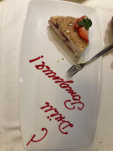 Read moreВ конце сентября были на небольшом банкете, а через несколько дней на семейном ужине. Надо сказать, что банкетный блюда в принципе им удаются. Все красиво порезано, выложено на тарелке. Лично для меня многовато соли. Заранее все заказано, и конечно всё приготовлен хорошо. Но когда мы приехали на семейный ужин в 5 вечера, и сделали заказ по меню, мне не понравилось ничего, кроме шампанского. Заказали рулетки из сёмги или лосося с творожным кремом. Их нам принесли замороженными! И конечно вкуса уже никакого. У меня были морепродукты. Не плохо, но не ах. Ровно год назад мы были семьёй здесь и заказывали также по меню, остались недовольные. За год в общем-то ничего не изменилось. Сильная сторона - банкеты заранее....