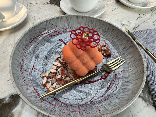 Read moreОдна звезда за красивый интерьер. Это действительно, постарались. Пришли на обед с коллегами, было три стола, в итоге недовольны были практически все.В меню блюда выглядят очень красиво и вкусно, в итоге я взяла гребешки, собственно видно на фото какие они «красивые»,отчего потом у мен жутко заболел живот, потом была котлета из щуки, сверху с икрой, ну собственно толко соус к ней был вкусный, котлета не сочная, не приправленная достаточно. Десерт обычный, взяла только из-за внешнего вида, по сути абрикосовое повидло внутри, обрамленное шоколадом и каким-то холодным с кусочками попадавшегося льда суфле. Обслуживание просто дикое. Несколько раз просили принести приборы и чайные пары, просто игнор, в итоге с 3 раза принесли, по меню не ориентируют, официантка это что-то, её недовольное лицо просто ужас. Неприятно сидеть и за этим наблюдать, что мы не гости, а просто...