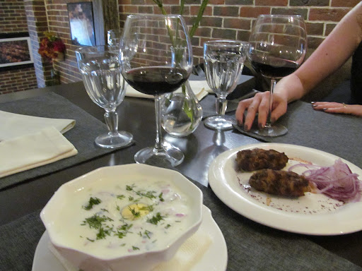 Вчера ходили в это заведение с коллегами, заранее заказали стол на 7 человек. Сразу отмечу у нас были купоны со скидкой...может в этом всё дело..? Кому лень читать сразу пишу, своих денег это заведение не стоит . Зал разбит на 4-5 зон, есть места внизу и наверху, то есть столов много, туалет один на всех.. Музыка живая какая то не живая...( Для субботы не лучшее место отдохнуть Примерно в одно время с нами пришло ещё несколько гостей, был и большой стол человек 10. Заказали мы прилично, и хинкали и салаты и хачапури и шашлыки и закуски, кому что нравится, ну и конечно же вино, какая грузинская кухня без вина). Хотелось бы отметить, что заведение позиционирует себя как ресторан грузинской кухни... На входе правда на писано кафе..? Сделали мы заказ и захлебываясь слюной стали ждать... 40 минут мы ждали... Нам не то что не приносили блюда, нам даже не засервировали стол... Тарелок не было, бокалов не было, вилок и тех не хватало на всех... Ну допустим это ресторан и ждать действительно необходимо столько времени, но подать одному гостю сначала суп, а всем остальным сидеть и смотреть...это слишком...Да совсем забыла про вино...его видимо везли прям из Грузии, потому что оно появилось на столе, только после подачи горячего .. А горячее принесли, а конкретно хинкали, ещё до салатов.. Вот такой вот сервис...Потом все стали подавать прям стремительно, на столе оказалось всё и сразу .. А зачем я писала про другие столы, а вот зачем, когда нам принесли наконец еду и разлили вино... Они уже доедали и ждали счёт.... Чуть чуть о качестве блюд .. в принципе не плохо, не могу сказать, что вкусно, потому что от национального ресторана ждёшь вау, а так вполне посредственно, в любом другом месте приготовят не хуже... Да и выбор в меню не большой, а Цезарь и оливье в меню грузинской кухни очень удивили... Наш счёт превысил какую то сумму и в подарок нам подали Наполеон...нет не так ... Слоёное тесто с тонкой одиночной прослойкой, какого-то крема...ну вот честно .. лучше бы не позорились.. Ну много ещё чего было.... Думаю слишком много букв. Сухие цифры: работают до 12, средний счёт с алкоголем ( без фанатизма) 4000-5000 на человека. Спасибо...