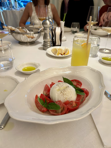 Интерьер ресторана — светлый, утончённый, с белыми скатертями и классической сервировкой, создаёт ощущение легкости, словно вы не в Москве, а где-то на побережье Лигурийского моря. Обслуживание безупречное — ненавязчивое, но внимательное.