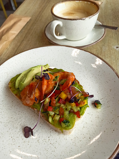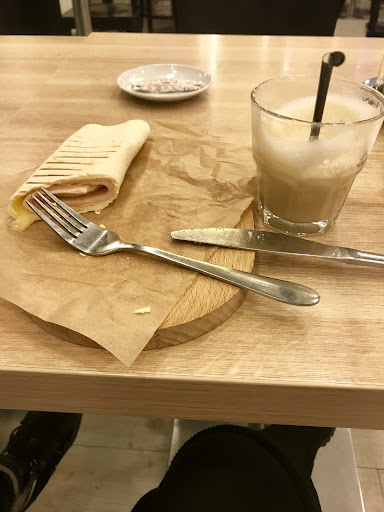 Read moreБыли с подругой здесь рано утром в субботу. Удивило, что в это время уже было несколько столов занято) Приятно порадовало, что до 11 утра действует очень выгодное меню на завтраки, где цены отличаются от обычного меню в пользу клиента. Заказала ролл с начинкой из ветчины и омлета и латте. Можно выбрать на каком молоке приготовить кофе. Я люблю на несладком соевом молоке, но здесь подают только на сладком, поэтому пришлось заказать на обычном коровьем. Кофе принесли очень горячим, я обожглась когда попробовала, пришлось ждать когда остынет - это большой минус. А ролл оказался не с омлетом, а просто с яичницей, но для меня это не так уж и важно)) Обслуживание хорошее, официант вежливо отвечал на все вопросы. В общем, осталось неплохое впечатление, но кофе нужно делать не настолько горячим. И если добавите к наличию ещё несладкое соевое молоко, то в гости на необжигающий кофе...