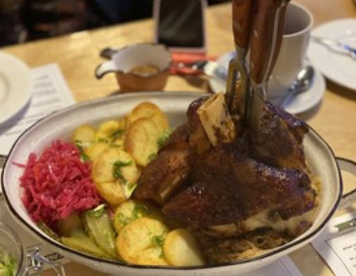 Read moreЕздили в Коломну из Москвы на выходные, перед возвращением хотели плотно пообедать, по отзывам нашла это место - нам очень понравилось. Втроем поели на 1335, брали полурульку с соусом баварская горчица, подается с купустой и картофелем (первое фото), пельмени мясные, пиво чешское (маме очень понравилось) и два морса, морсы большие, два полных стакана порция, тоже вкусные. Рулька очень вкусная, прожаренная, сытная, не сильно соленая, но со специями (я не ем острое и сильно соленое). Как правильно пишут, целая рулька (третье фото) на двоих много, полурульки нам хватило с лихвой на двоих. Персонал приветливый, расторопный, я позвонила в 15-30 и заказала стол на 17, т.к. прочитала, что людей много - пришли в 16-40, подождали 20 минут, т.к. реально очень много людей, это было воскресенье, думаю, в пятницу вечером и субботу вообще не протолкнуться. Единственный небольшой минус это всего две туалетных кабинки на несколько больших помещений, но с этим можно жить)
