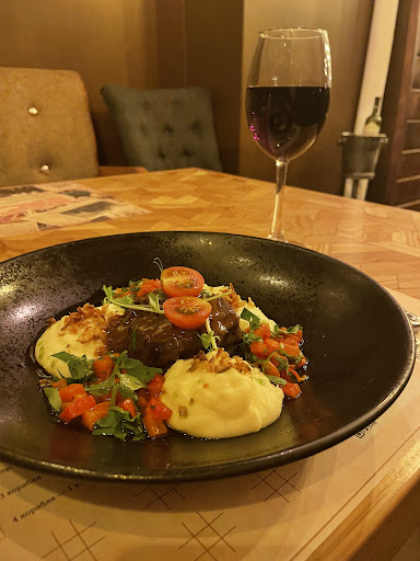 Read moreВ целом заведение хорошее, большое меню, можно заказать на большую компанию сразу плато. Впечатление хорошее. А теперь по пунктам Сервис На входе вас встретит хостес, которая выслушает ваши предпочтения по поводу места для трапезы. Попросила место с розеткой, но было все занято, тогда решила сесть на второй этаже на балконе. Место хорошее, но есть одно но.. на сколько я знаю, но курить как айкос как и другие курительные аппараты запрещено, рядом со мной сидела пара которая свободно курила айкос, честно запах не переношу, но как то делать замечание посчитала не нужным, тем более это должна делать не я. Что касается официантов, меню мне подала сразу же хостес, а вот принятие заказа пришлось ждать долго. При всем этот официантка соседнего стола явно видела, что стол готов заказать, но по итогу ко мне подошёл другой молодой человек, заказ принял и передал другому официанту. Официант хороший, к нему вопросов нет. Еда Заказала сначала томленую говядину, салат из баклажанов и гранатовое вино. Вообще выбор большой, что еды, что напитков. Как полагается вначале принесли напиток, вино хорошее, к мясным блюдам отлично подходит. Из-за хорошей кислотности будут так же хорошо сочетаться с более «тяжелым» мясом (баранина, свинина). Вино идёт по бокалам. Так же можно и бутылку взять. Потом принесли говядину, следует упомянуть, что насчёт порядка подачи блюд меня не спросили вообще, по идее конечно сначала должен идти салат, но данная ситуация была исключением. Блюдо хорошее, говядина мягкая, сочная, подаются с пюре и овощами. Блюдом довольна 10/10. Ожидание было минут 15-17 После говядины ещё минут через 10 принесли салат. Мне кажется такой салат скоро станет классикой, ибо его много где можно попробовать. Без проигрышное сочетание хрустящие баклажанов, томатов и свитчили соуса. Тут ещё добавлен мягкий сыр, что является плюсом. Ну говорю честно, пробовала вкуснее 9/10 Ну и на последок надумала взять десерт. Попросила снова меню, принесли быстро и потом опять пропали… подошел официант, спросил приняли ли у меня заказ. Взяла классический фонтан. Подача весьма интересна, помимо жидкой начинки, которая обязана быть с фонтане, вас ждёт маленький «бедончик» с топленым горьким шоколадом, которым можно полить мороженое. 10/10 В целом хорошо, сервис чуть бы...