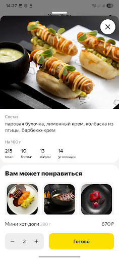 Разочаровали очень сильно. Заказали блюда на день рождение, привезли какое-то месиво, причём находимся мы чутли не в соседнем доме. Привезли всё холодное, хотдоги превратились в месиво! десерты все растаяли, потомучто положили их на горячее! И всю ответственность они перекладывают на курьеров, якобы ресторан не несёт ответственность за блюда, которые передали курьеру. Но это ваша репутация!!! Дело не в халатности курьера! А в том КАК вы упаковывате. У вас через раз, упаковывают через одно место. Вы иногда нормально, плотно упаковываете и всё приходит целое, ну немного размазанное и но не ушатаное. Не скидывайте всю ответственность на курьеров!!!! Да курьеры иногда на коне скачут. Но изначально вы упаковываете так, на отвали! Я знаю как вы упаковывате и как и можете упаковывать, я знаю как вы готовите и как можете готовить. Но иногда вы готовите на отвали, как сегодня! Сегодня блюда заказывались на стол, на день рождение. Представьте какое разочарование мы получили! Мы часто у вас заказываем и давно у меня не возникало желания написать!!! Но сегодня вы просто переплюнули всё!! Я вас так хвалила, так рекомендовала, в вас верила, но после сегодняшнего, нет на вас больше веры и надежды! И самое печальное это недовес блюд более чем 20%, 30%. Больше всего меня удивил салат из телятины. Посмотрите как выглядит на фото и что привезли, 4 листа капусты и 30 гр мяса с овощами за 960 рублей. Вот, просто не рекомендую этот...