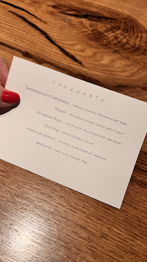 Read moreПрекрасный ресторан для дегустационных сетов в Москве. Хорошая заявка на Мишлен. Выдержанна атмосфера! Сначала нам понравилось помещение: выдержан стиль, создается перемещение себя из Москвы другое далекое пространство. Итак, сет…сет из 6 блюд: что-то понравилось, что-то не понялось. Обслуживание на 5, а вот за соседним столиком сидел товарищ, который своими громкими рассказами молодой даме отвлекал на себя весь зал. Если говорить о ценниках, то это дорого для России. За месяц до Оллуко были в 2 звездочном мишленском ресторане в Париже. Оставили ровно такую же сумму. Есть еще вопрос к wine pairing - недешевое удовольствие. 10 тыс и 20 тыс соответственно за латинская америка+ россия и Французский пэрринг. Мы взяли попроще- за 10 тыс. К треске принесли мутный мускат в стиле жесткой биодинамики - это очень специфический ход. Биодинамические вина вообще на редкого любителя. Не стоит так делать, на мой счет- принудительно знакомить людей с...