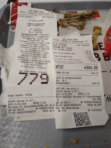 Всё-таки я не очень люблю KFC, каждый раз думаю, вдруг показалось, иду снова - не, не показалось. Первым делом замечаю, что часто они просто медленно работают (для своей категории) и я не смогу забежать и быстро что-то схватить по дороге на работу или поезд. Именно в этом ещё очень неудобное помещение. Внизу только касса и достаточно узки проход, где накапливаются люди в ожидании заказа. Про доступную среду я уже не говорю. Можно было повесить на втором этаже монитор со статусами заказов, чтобы все внизу не толпились. Мне совсем не нравятся бургеры у полковника. Мне кажется, что о итоговом вкусе никто не думал и он остаётся просто набором ингредиентов. Может, дело в соусе. Если добавить что-нибудь вместо кетчупа, было бы не так скучно. Спасибо, кстати, что теперь (в отличие от стабильной ситуации лет пять-десять назад) теперь кусок курицы в бутерброде похож по площади на сам бутерброд, а не занимает половину его. Твистеры и прочие штуки, в которых нет булки кажутся более органичными. Курица хороша, никаких вопросов. Хотя крылья и байтсы для меня островаты, но это уже на вкус и цвет, моя...