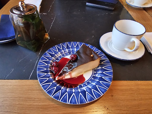 Можно сказать "Не вдохновило, Не понравилось, Не посоветую". Буду честен, постараюсь быть объективным, но это всё таки моё субъективное мнение. И так начнем. Как говорится, "Театр начинается с вешалки", а ресторан с парковки! Припарковаться у данного "Гранд бистро" та ещё задача, если вам повезло и вы с первого захода попали на свободное место, считайте, что вам крупно повезло. Район жилой + офисы и магазины, все парковочные места заняты постоянно. Мы сделали два круга по району, прежде чем припарковались. В гардеробе очень приветливые и вежливые дамы😁 очень подняли настроение! Обстановка в бистро без какого либо пафоса, всё стандартно лаконично, даже есть фонтанчик, даже с монетами😁 (но мы не кидали, вернуться желания не возникло). Стол за который присели немного наклонялся, при надавливании на одну из сторон. Не критично, но всё же, вдруг если собеседник облокотиться на свою половину стола, то второму нужно придерживать свой бокал. Столовые приборы, показались громоздкими и тяжёлыми (дело привычки, кому как удобно) но мне, так сказать, было не с руки. Официанты расторопные, вежливые. Хотел акцентировать внимание на освещении, оно чересчур приглушённое. Так сказать "лампочка Ильича". Как работает персонал в таких условиях и соответствует ли оно нормам по Лк вопрос? Я бы понял, если бы было распределение по зонам и мы присели в Лаундж зоне, но оно везде одинаково. (Освещение основных залов для посетителей должно быть одновременно мягким и комфортным, и при этом достаточным для чтения меню и общения.) Меню, заслуживает отдельного внимания. Основное меню, напечатано на бумаге песочного цвета, не белая, ни кремовая, а как обычная писчая бумага, только толще. Шрифт мелкий, да ещё и бледно красный. Теперь складываем эти факторы вместе и получаем, чтобы при таком освещении прочитать данное меню, придется "поломать" глаза🤦 Даже когда вам удастся сфокусироваться на данном меню, вы можете не понять, что там написано. Если вы не сталкивались с Грузинской кухней, не являетесь её почитателем и решились попробовать в первый раз, то для вас, некоторые названия будут как Китайская грамота. А беря во внимание, что меню не иллюстрированное, то понять, что вам предлагают не представляется возможным. Не написан состав блюда, выход порции, ничего, кроме названия. По итогу, полистав основное меню, взялся за обеденное, которое, в свою очередь, отпечатано на светлом фоне. И более менее есть знакомые фразы😁 Наконец, сделав заказ, мы побороли порыв встать и уйти. Подождав обещанное время, мы не лицезрели салатов. Но спустя ещё небольшой промежуток времени, они появились, но уже вместе с основными блюдами. Хотя оговаривалось, что подача по готовности. Кто где споткнулся, разбираться не хочется. Харчо почему-то был не очень теплый, а точнее частично холодный. А самое главное, ооооочень острый. Я понимаю, что Харчо острый, но не настолько же. А если у человека язва или ещё что то, а тут такая порция перца🔥И в меню об остроте блюда ни слова. В остальном всё здорово. Мясо томлёное, вкусное. Салат с лососем зачёт. Салат с баклажаном тоже заслуживает похвалы. Десерты (тирамису, панакота) нежные, панакоты правда маловато в порции. Когда официант спросил, понравилось ли нам, честно сказал, не вдохновили. Подошёл администратор, узнать почему сложилось такое мнение. Я поделился впечатл