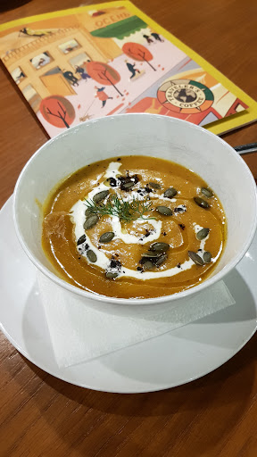 Read moreЛучшийТрэ!!! Во-первых, здесь очень уютно и приветливый персонал! Были с ребенком, девушка-официант сразу принесла стульчик (причем чистый - в отличие от многих заведений города!), сама поставила коляску так, чтобы и нам было удобно, и другим не мешали. Меню! Разнообразнее, чем в других филиалах. Из общего меню можно выбрать и для ребенка до года. Заказали овсянку на воде - без проблем исполнили заказ))) чем очень порадовали) Обслуживание! На 5! Приветливые, вежливые официанты, готовые идти на встречу посетителям. Собственно, сама еда - вкусно, недорого. Все горячее-теплое) и очень важный пункт для мамочек - есть детский уголок с мольбертом, игрушками и всякими приятными мелочами...