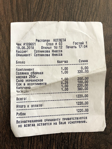 по рекомендации сегодня решил сходить пообедать...сначала официанта смутил мой внешний вид, говорят в спортивном нельзя (футболка, шорты длиной до колена и кроссовки), после моего молчаливого удивления, предложили присесть в «кабинку»)) официант Инесса знает достаточно хорошо меню, приветлива и доброжелательна. чуть позже принесли масло с травами и хлеб в рекламном стакане виски какого-то, к сожалению стакан был на столько грязный и залапанный грязными руками ровно на столько, на сколько это можно представить (фото попробую приложить)...после просьбы это заменили, к хлебу уже было не притронуться, не знаю кто и в каком состоянии его туда кладёт. заказал солёное сало, солянка сборная 250 гр, чизкейк, ну и кое что из напитков (это сложно испортить конечно, но кофе хотелось бы не из автоматической кофемашины). Теперь по порядку о блюдах, сало было вроде норм, хвалить не за что, но и ругать нельзя, а вот дальше была абсолютно безвкусная солянка...те от слова совсем, искал вкус ложек 5-7 наверное, не нашёл и попросил официанта забрать поделившись с ней своими эмоциями, она пообещала передать поварам, надеюсь так и случилось)) поварам привет большой лично от меня)) после принесли пирог с яблоками/грушами, который тут именуется чизкейком (со слов официанта для них печёт какая-то девушка и привозит к ним в кафе, назвать это заведение ресторан не поднимается рука), более странного чизкейк не ел в жизни, как пирог ещё может быть, его ещё зачем то очень обильно поливают шоколадным соусом...резюме хотели как лучше, а получилось как всегда...солянку из счёта не удалили, конечно, не поварам же ее оплачивать)) если бы официант не старалась бы шутить и быть милой, вообще...