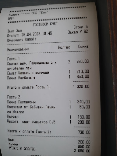 Read moreНовое кафе открылось вчера на месте Аббете Россо. Ставлю 3* с большой натяжкой. Официанты не клиентоориентированы. Что ни спроси - ничего не знают. Просим пледы, отвечают, что их нет, потом принесли. Состав блюд также не могут объяснить. Меню изменилось, есть практически нечего, не указан вес порции и состав блюд. Но самое главное - это подача! Сначала принесли свинину (горячее блюдо), через 5 мин. цезарь. И как это есть? Если начать с салата, то горячее остынет... В Цезаре гренки должны быть сверху салата, тут же они почему-то были на дне тарелки - клёклые( Добил нас счёт, в котором были указаны 2 гостя (хотя нас было трое). Согласно счёту 1 гость ест 2 свинины, потом цезарь и потом пиццу; а 2 гость ест одну пиццу и 3 напитка. Абсурд полный. Официант не знает, что такое курсы! Пустые тарелки стояли на столе весь вечер, официанты проходили мимо, пока не пришло...
