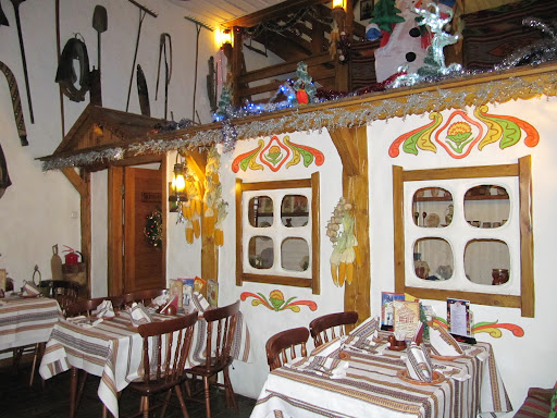 Заказ принял очень вежливый официант, который помог выбрать блюда и принес комплимент из пикантного смальца с перцем и свежий хлеб. Очень удивил вкус - никогда не любила сало, но в таком виде оно очень вкусно. Не успели мы и глазом моргнуть, как принесли горячее. Я заказала постный борщ с копченой грушей (очень хотелось попробовать такой вариант), а супруг - солянку. Порции очень большие. Я одним супом наелась) на второе взяла салат из языка и печеных овощей. Мне не понравился, т. к. было много моркови, которая была очень крупно нарезана. Супруг взял Деруны и салат (какой не помню). было очень вкусно. Официант постоянно подходил и проверял, все ли у нас в порядке. Мы были в будни, поэтому народу было не много. Несколько столов было занято группа взрослых мужчин. Они тихо чокались и болтали о своем. В целом нам очень понравилось. Цены очень разумные. Будем...