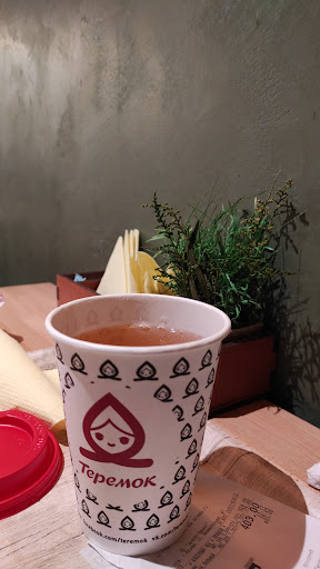 Жаль, что не могу сказать того же самого о других кафе сети Теремок. Мне есть с чем сравнивать. К примеру, Теремок у Белорусского вокзала я иначе как дешёвой забегаловкой назвать не могу. Дешёвый чай в пакетиках, блины подаются на картонных тарелках, супы тоже подаются в одноразовой посуде.