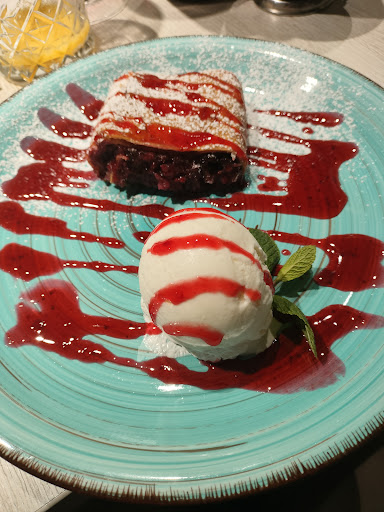Насчёт цены. На двоих со спиртным (было 200 гр. хреновухи и бокал белого) + кофе и десерт получилось 8.000р.