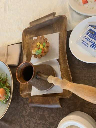 Супер место! Дагестанская кухня. Хинкал, сушёное мясо, колбаса, отварная баранина, шашлык, курзе, чуду... Зал где можно поесть сидя на полу на пуфах за низкими столами, и отдельные кабинеты. Достойное и недорогое заведение.