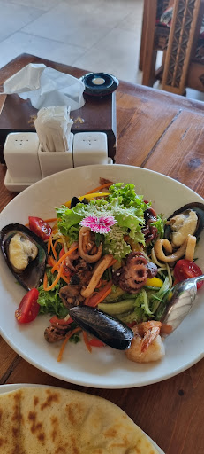 Первым делом, по приезду в Махачкалу, решили посетить данное зведение. Ориентировалась на отзывы! Действительно, красивый вид, обстановка! Заказала себе салат с хрустящим баклажаном - оказался очень острый ( официантка не предупредила). Вкусный, но я острое не люблю. Дочь заказала салат " Нептун" - вкусный и красивый. Хачапури - вкусный очень! Но всё омрачил сырный суп! Как будто пачка плавленной виолы с добавлением ещё расплавленной моцарелы. По консистенции густой сметаны. Это не суп! Ни я, ни дочь кушать такой суп не смогли и не стали. Официантке отдали обратно, проговорив своё негодование. Причём в меню на фото, он так не выглядел! Нам его не заменили! Не принесли извинения! Включили в счёт! Никак эту ситуацию, даже не пытались исправить. Вообщем, клиентоориентированности видимо нет! Посетителей и так хватает. Цены...