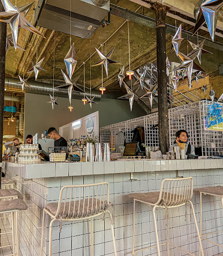 Convivial restaurant & bar serving global meals, drinks & weekend brunch in an industrial setup.