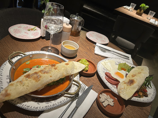 Tasty food with awesome cocktails It’s a restaurant with modern Georgian cuisine. All ingredients are tasty and fresh. Big portions. There are regular menu and breakfast options. You can choose dishes from eggs, special bowls, scones from oven with different spreads. You can also add something extra to your breakfast (salmon, avocado, homemade cheese, truffle, etc). Everything was really tasty, but, unfortunately, truffle was without any specific taste. We decided to return it back without adding in a bill. Which is fairly. Big and very interesting cocktail card: there are a lot of cocktails which are divided by groups (taste based). Staff is very nice and helpful: everyone smiles and can help you with a menu. There are tables inside and cozy...
