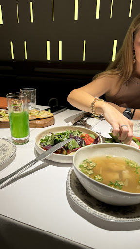 Read moreПосетили с женой этот ресторан вчера 12.04. По еде все устроило, брали по салату один с брынзой, другой со сливой, на закуски лахмаджун с трюфелем, кальмара и тар тар из лосося. На горячее сибаса с овощами на гриле. В целом вкусно и оригинально. Теперь по сервису - к официантам, нас обслуживал Артем, хостес и гардеробщику вопрос нет, сервис услужливый, доброжелательный, клиентоориетированный. Но при выборе вина и общением с сомелье, произошла крайне удивительная ситуация. Т.к. винная карта достаточно ограничена я позвал сомелье, чтобы поинтересоваться не ли чего то вне винной карты, выслушав мои пожелания, девушка принесла пять бутылок: два рислинга, два шенена и триббиано. Я остановился на рислингах, поинтересовался о стоимости. Девушка сообщила, что базовый рислинг 6тр., а тот что насыщенный 9 тр. В общем я остановился на рислинге за 9 тр. Нам разлили вино, оно оказалось комнатной температуры, а для рислинга это критично. Но думаю ничего, охладится в кулере. Через 7 мин. возвращается сомелье и говорит, что они с шеф сомелье ошиблись и вино стоит не 9, а 22 тр., но так как они уже его открыли, то предлагают нам заплатить 16 тр. Мы с женой от щедрого предложения отказались. Но сомелье вышла со следующим предложением - заплатить за вино в бокалах, которое она успела разлить, от этого предложения я тоже отказался и попросил забрать вино в бокалах, тем более, что оно было теплое. Еще мин. через 5, снова возвращается девушка-сомелье, видимо снова переговорив с шеф сомелье и предлагает нам тот самый базовый рислинг за 6 тр. в виде комплимента, от которого я отказался первоначально, очевидно подумав, что бесплатно он мне понравится больше. От рислинга отказываюсь, прошу винную карту и беру сансер, который к слову тоже был недостаточно охлажден. Девушка еще к нам подходила и извинились за ситуацию, сказала, что работают третий день. Извинения приняли, сказали, чтобы не расстраивалась. Какое мое мнение о данной ситуации? Что всему персоналу наплевать, к нам не подошел ни управляющий, ни шеф сомелье, ни администратор, короче говоря отправили решать конфликтную ситуацию девушку без опыта. Это конечно...