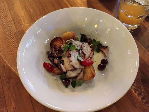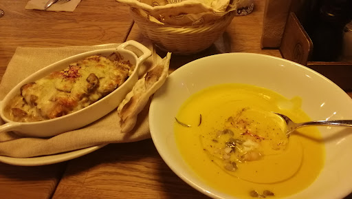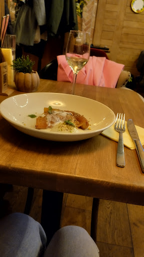 Посетила данное заведение 13.12.21, вечером. Давно планировала заглянуть, очень привлекал интерьер. Очень уютное место, тихое. Отлично подойдет для задушевного дружеского общения или романтической встречи. Однако, если кто-то сюда идет за едой ресторанного качества, лучше выбрать другое место. Заказывала филе дорадо с зелеными овощами и сливочным песто. Порция маленькая, филе обжарено неравномерно, со стороны хвоста ощущалась горечь зажарки. Указанный в описании блюда "молодой зеленый горошек" жевался с трудом и был оставлен в тарелке. Для кафе быстрого питания, столовой или сервиса доставки это блюдо было бы прекрасным украшением меню, но для заведения, претендующего на категорию ресторана - сомнительное качество. Интересное наблюдение. Т.к. люблю брюссельскую капусту, не обратила внимание, но! В меню указаны отсутствовавшие цуккини и присутствует обжареная брюссельская капуста. Обслуживание среднее. Официант не мог точно проконсультировать по составу блюд, а после забыл принести заказанную воду. Вино понравилось Ценник по ресторанам в центре средний, но ощутимо вызывает раздражение, глядя на крошечкую дорадку.