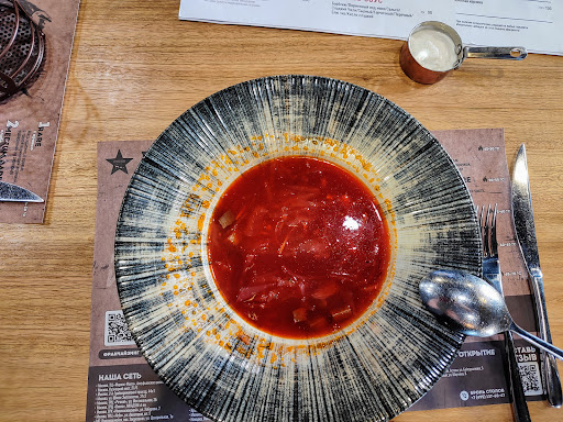 Зашли сегодня с внуком, подкупила цена. Внук продвинутый, почитал отзывы и просил меня отвести его в другое место. Но, я ж советский дед, дай проверю. Заказал лимонад , пасту болоньез, внуку посоветовал рибай медиум вэлл и картофель на углях. Принесли лимонад.... ЮПИ, плюс несвежая веточка розмарина. Пить невозможно эту борматуху. Приносят еду, спагетти Макфа с фаршем, у внука солидный кусок мяса ( медиум), ломти картофеля, луковые кольца ( оказались несъедобные, отдают старьëм). Плюс официантка дала совет помалкивать, когда мы ей про отзывы сказали. Так что жрите и пейте, что дадут, дорогие товарищи, и...