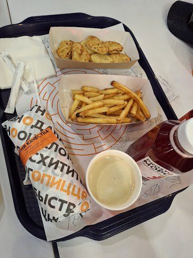 Read moreМы зашли перекусить всей семьёй. Заказали пиццу, питу, кролл, напитки. Качество еды нормальное, не "ах, как вкусно!", но приемлемо. Пита морская, оказалась с крабовой палочкой. Ужас! Атмосфера достаточно уютная. Не понравилось время ожидания и какой-то постоянный движ у кассы. Если есть много времени, то можно зайти и неспешно посидеть, пообедать. Плюс- это наличие различных акций, это приятно. Мы решили поучаствовать в акции "пончик за отзыв". И чтобы получить "пончик" мы уже просточли на кассе 15 минут, но так и не дождались очереди. Покинули заведение...