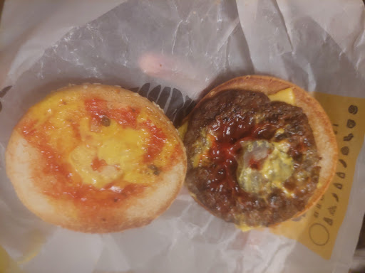Very busy Burger King. There are 6 kiosks for e-order, self-service, which we used to order, but paid at the cashier's. The food was good. Service was good and fast. We had fish wrap, spicy shrimps, coffee, tea, village style French fries. There are charging outlets at some or all the tables. There are bathrooms. Also, there is walk-in order window...