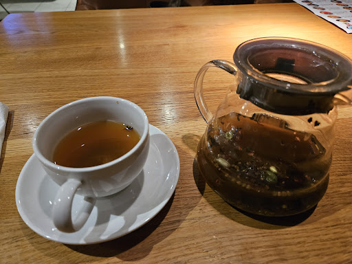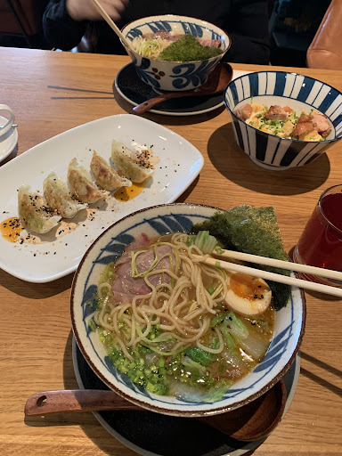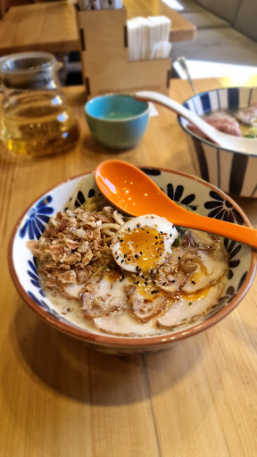 Плюсы: Интерьер, обслуживание Минусы: Ценник ресторанный, еда уровня общепит Порция рамена огромная, но это просто бульон со сладким нечто внутри, ну т.е. ты объешься, но это некая сладкая дешёвая биомасса по факту, а не еда. Для очень непритязательного вкуса наверное ОК. Чай за 450 руб опять некая сладкая субстанция, чаем это назвать сложно Не знаю на каком развале покупали чайник - из него тупо всё вывалилось в чашку и чай я жевал (см. фото) Рассчитываться нужно по QR коду, я потратил лишних 10 минут на это глючное IT поделие, чтобы тупо заплатить за свой заказ. Очень странное решение для этого уровня цен...