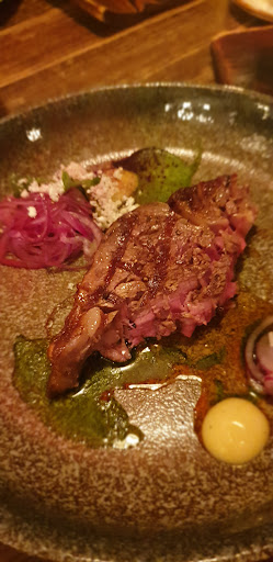 Read moreРесторан не оправдал наши ожидания . Был заказан столик на троих . С суетой разместили за столиком на двоих с приставным стулом, хорошо, что третьим гостем был ребёнок .В пятницу к восьми вечера все заказанные закуски отсутствовали : буррато с томатами , паштет из кролика , пельмени . Подача одновременно заказанных горячих блюд была с отставанием минут в сорок , официант при приёме заказа не уточняла , в каком порядке подавать блюда , стейк был подан фактически одновременно с закуской. Заказывали Рибай, далеко не в первый раз в жизни , приготовленный кусок мяса имел большее сходство со стейком Нью-Йорк. Заказанный гарнир , овощи гриль, содержал много лука, томаты, кабачок и грибы . Грибы - это не овощи !!! Салат Митрич - съедобно , но стоимость совершенно не соответствует представленному набору продуктов . Горячее блюдо из телятины - мясо вкусное , картофельное пюре производит впечатление разогретого , соус оставляет долгое нежелательное послевкусие . Десерты заказывать не стали . Дорогая мебель с сомнительным удобством для целей употребления пищи , скорее подходит для расслабленного времяпровождения с коктейлем , отсутствуют тканевые салфетки , которые было бы удобно положить на колени в случае низких столов . Единственный плюс - хорошая винная карта и...