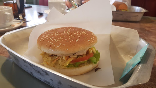 Очень неоднозначное отношение к данному месту. Были два раза, в первый раз заказывали стейки, было в общем то неплохо и в плане кухни и в плане обслуживания. Во второй раз все было диаметрально противоположно. Решили попробовать недавно появившуюся мексиканскую кухню, заказали тако, разные виды буррито, кесадилью. Лепешка для тако судя по всему была старой и пересушенной, что разгрызть что разрезать ее было проблемой, с блюдом приходилось буквально бороться. Лосося не чувствовалось, а буррито что с говядиной что с индейкой по вкусу ничем не отличались. Да и вкуса этого не было. Все блюда из заказа вынесли одновременно и очень быстро, как будто подогрели, подача в железном подносе и на сковороде, никак не оформленная, явно не уровень ресторана. Официанты замученные и странные, то в упор не замечают то рассматривают как будто первый раз увидели людей, грязные салфетки и ножи оставляют на столе как немой укор до конца, за наполнением солонок и перечниц не следят. А так оформление достаточно приятное, цены средние и выше средних, расположение в центре Рождественской, заведение работает круглосуточно. P.S. салат что подаётся к бургеру называется коул слоу а...