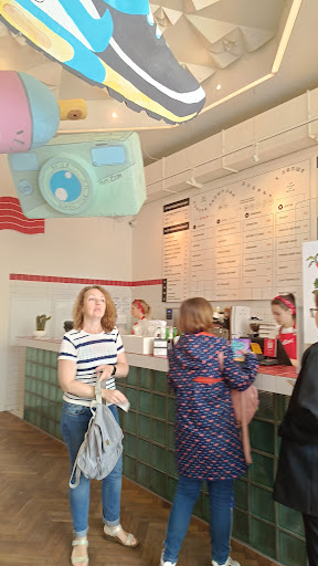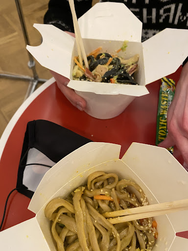 Read moreВ нашей компании были как студенты, так и пожилой человек - но понравилось всем одинаково! В первую очередь качество блюд: мы брали уже предложенные варианты зелёной лапши с креветками, с щёчками и с грибами (вы можете собрать лапшу и сами, но мы по неопытности положились на готовые сочетания ингредиентов). Очень вкусное наполнение: креветки крупные, а сама лапша совсем не такая, как дома или в некоторых других воках - здесь она толстая. Вафли с кленовым сиропом тоже большие, мягкие и вкусные. Размер порции стоит своих денег (450р), хотя и кажется небольшим: съели по лапше в качестве обеда, половинку лапши унесли с собой (уж больно сытная). Место хорошее, симпатичное, но шумное из-за выступающих на улице музыкантов. Но это за минус не считаем, так как зато весело. Оформление интересное, но, когда людей много, оценить его сложно: мы ели на веранде снаружи, там тоже симпатично. Обслуживанием и соотношением цена-качество довольны. Рекомендуем...