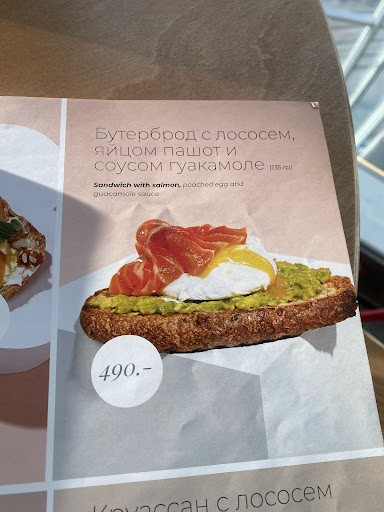 Но еда..это ужас. Я заказала тост с лососем и гуакамоле. Просто сравните как это выглядит в меню и в жизни (фото - скриншот из видео, поэтому такого качества). Ладно если бы только внешний вид, на вкус еще хуже( лосось несъедобный, очень соленый, отдает тиной.
