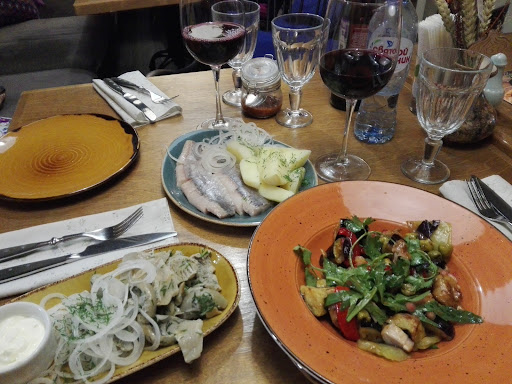Очень вкусно! Я тут впервые, хотя знаю и слышу про место давно, да и живу поблизости.Только вот вино почему-то теплое, что неправильно по мне, много где по миру была в ресторанах, да и моя подруга тоже, в Канаде уже 20 лет прожила и знает,что почём. В общем, подискутировали немного на эту тему с малоквалифицированной официанткой, ну совсем необученной, хоть и уже знающей какие-то названия блюд; оказалось —стажер.Молодая девушка.Старалась, как могла, но разговаривать не умеет совсем.Забавно в таком серьезном заведении, с интереснейшим интерьером, видеть такое чудо.Были вчера,20 августа. А так поели сытно, с удовольствием, много чего попробовали, сделали море фото, благо поначалу не было народу и мы никому не мешали с процессом, красиво сидели в пустом зале и хорошо, что не пошли на балкон, там шуновато и тесно, столики близко. Мы пришли к 18, но с 20ти часов в ресторан быстро начал подтягиваться народ, покушать.Но вино должно быть холодным, международный стандарт+18+20, а не комнатной температуры.Это на замковые комнаты и подвалы ссылаются этикетки, надо это просто знать.Мы уже пенсионеры, есть знания. Придём ещё, может найдётся для нас холодная бутылочка вина, держите уж для всех разное,что ли.Ещё не понравилось без конца подбегающая официантка с расспросоми, как нам тут.Знаю,что новый приём навязаться, сама в своем бизнесе работала 20лет...Боялась,что мы ничего не закажем , а мы так сладко потягивали Мукузани. Очень уж хотелось прийти в себя после суетного динамичного дня и просто вкусить немного атмосферы Кавказа, Грузии, понаслаждаться общением.Утонченности в обслуживании мы не уловили, может только поначалу, когда нас Администратор принимала. А вот другой Сотрудник, незнакомое лицо, вдруг напряженно начала нас просить пересесть.Отказались.Все эти"мелочи", конечно и есть сервис...Но надеются, видно, здесь , на русское извечное терпение.Сработало.Мы не ушли и досидели до конца, до поезда оставалось всего два часа и менять место ужина не было времени.Поэтому, забыв свою притязательность, старались наслаждаться тем, что есть...Остатки нам красиво упаковали с собой, ХОРОШО.Вино нас расслабило и еда сделала своё дело, - мы стали добрее и мягче, что и должно происходить в ресторанах.Музыка тоже стала иетереснее поздее, а вот в 6 часов она удивила меня очень сильно своей попсовостью, не то.Но по приходу посетителей, местный диджей или кто там за этим следил, исправился. Наверное, вспомнили,что именно помогает людям в ресторане открыть кошельки.Почти про всё упомянула, кроме еды.Ну да ладно, достойно.Горячий салат, люля кебаб, хачапури - отменно, хлеб лепёшка холодная и резиновая, - удивила. Канадская подруга остро захотела картошки с селедочкой по - русски, соскучилась в эмиграции, почему там её нет, не знаю.И груздей захотела.Это всё, что её привлекло в меню.Так то она сибирячка, наша.А вот чёрного бородинского хлебушка не нашлось для неё, а как уж ей ностальгически хотелось, к селёдочке то, да груздочку.Сельд ведь предлагают в грузинском ресторане , можно и хлеба корочку чёрного держать, как блюдо. Ещё очень понравился десерт , пирожное фисташковое в клубничным соусе, отдельное спасибо.Необыкновенное сочетание вкусов, очень гармонично.Приду ещё отдельно и за этим...