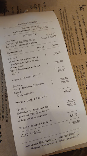 Read moreОтличная атмосфера Северной Африки в столице Сибири, дополненная музыкой и добрыми официантами. Напоминает заведения на Рубинштейна, в Питере. Понравился Марокканский зал. Прекрасный ягодный чай с черной смородиной и базиликом, аналогов не припомню. Брали его несколько раз. Кухня хорошая, но без культурного шока, типа: "как вы это смогли приготовить?!" Добротно и со своими ньюансами. Понравились самодельные конфеты из фиников. Суп из апельсинов. Мусс показался жирноват, но был сьеден. Фарудж симсун на 4 из 5. Где 5 это же блюдо, приготовленное в Марокко. Заведение средней ценовой категории, поэтому, все нормально. Понравилось, решили зайдем еще обязательно. Из минусов? Ну, музыкальный лист можно подредактировать :) французские и арабские мелодии очень подходят под интерьер. А вот что-то иное диссонировало. В остальном, для встречи друзей и общения, очень хороший вариант, на случай, если с ними нельзя встретится...