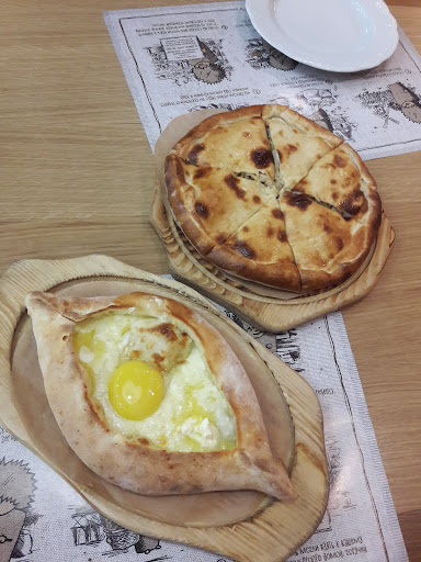 Read moreМесто необычное. Почти год посещая ТЦ ауру наблюдали очередь в данное заведение. В воскресенье утром попали без очереди, на входу вас встречают приветливо и провожают к столикам паралельно рассказывая о новых и популярных блядах. В меню на первых и последних страницах вы найдете историю создания и способы поедания разных блюд. Само меню очень разнообразное, много разных блюд с иллюстрациями но часть из них имеет только название, по которому не понятно из чего оно состоит. Хотелось бы подробнее узнать чьё мясо будет в пироге. Из трёх блюд: хачапури из телятины, пирог с фермерским цыплёнком оказались безвкусными. Как мне показалось нет ни соли ни перца, ты просто поедешь пирожок с мясом. Но вот химкали в овощном соусе оказались великолепны. Выглядит точно как на картинке. Все блюда предались руками, ножи на столе оказались бесполезными. В целом дизайн заведения очень хорошим, под старину с пошоркостями и мазками штукатурки на зеркалах. Возможно в этой кухне надо заказывать более острые блюда чтобы понять всю радость и...