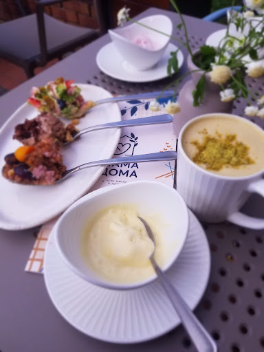 Read moreПриятное место в "тихом центре" города. Просто проходили мимо и зашли попить кофе с мороженым. Понравился внутренний интерьер: небольшие столики и в центре - диван перед камином. Очень уютно. Но, т.к.на дворе лето, мы расположились за летними столиками на улице. Мороженое действительно вкусное, особенно ванильное, другие, на мой вкус, сладковаты. Взяли на пробу фирменый десерт Мама Трио. По существу, это по 1 столовой ложке! разных бисквитных тортов. Вкусно, но не "Ах!" и в эту цену об'ем мог быть и побольше. Фисташковые раф для больших любителей латте и капучино. Очень много молока и воздушной молочной пены. Сверху посыпан...