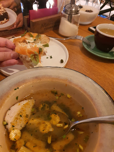 Read moreНе знаю за что тут оценка 4.7 вроде выглядит все многообещающе но греческий салат заправке вообще не понятно чем на вкус заправка из пакета, уха на троечку, но больше всего разочаровала паста карбонара... макароны переварены, соус какая то голимая мука без намёка на качественные сливки, ещё обслуживание тоже оставляет желать лучшего забыли отдать пасту ребёнку на итог мы еле позвали официанта и она вспомнила что ещё одна порция не подана, пиццу просили принести в конеце после всех блюд и напитки тоже. На итог муцца на столе напитки на столе и принесли суп, холодная пицца и холодный чай это грустно. Чай авторский в меню с брусникой принесли с клюквой, а я не люблю клюкву, это так не работает. Суп пюре картофельный с беконом в меню ничего не сказано про грибной бульон на основе которого он делается, а я не ем грибы. Настроение...