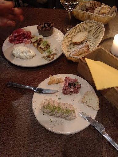 Хотелось перевести дух после напряженного рабочего дня, легко и вкусно поужинать и пообщаться в приятной обстановке. Кухня: тар- тар из говядины- отлично, тар- тар из форели- ничего особенного, багет, который подали к тара- тар - не выдерживает никакой критики, салат Нисуаз просто великолепен (отдельный респект повору), телячьи щечки - хорошо. Комплименты от заведения очень оригинальны, приятно и вкусно. Вино не брали, обошлись лимонадом (на троечку). Обстановка: зал небольшой, уютный, особенно когда зажгли свечи, но (!)очень мешала общаться громкая музыка, т.е. через столик плохо слышно собеседника, не говоря об официанте, который с высоты своего роста вообще ничего не слышал и приходилось по несколько раз ему повторять. На просьбу уменьшить громкость реакция вялая- попробую, и только чуть и вообще наш формат подразумевает ... и долгий нудный монолог. Обслуживание отвратительное, по сути нам официант испортил вечер. После закусок он решил протереть наш стол, все предметы на столе переставлял и старательно возил перед нами тряпкой... что это, зачем, нельзя сказать что мы стол уделали. Он попросту забыл про мой салат, хотя заказ повторил (не записал), в итоге я получила салат (повторюсь отличный) спустя более часа, когда мой визави уже закончил с горячим. Далее вообще бред- наш официант как- то превратно истолковал фразы, услышанные в нашем разговоре и пришел в завершении нам выговаривать свои домыслы...что это? В общем продолжить знакомство с кухней заведения хочется, но боязнь "нарваться"на этого...