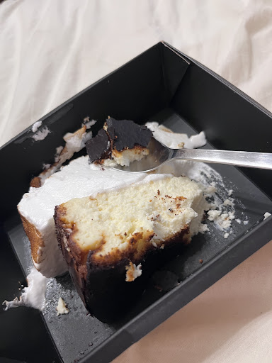 Сказали об этом официантке, девушка вызвала администратора, которая с умным видом сказала, что так и должно быть. Ранее в других азиатских ресторанах, были такие случаи, но всё решалось быстро и спокойно, все были очень вежливыми и культурными. Но ваш администратор, крайне пассивно и наигранно, отвечала на претензии, после недолгих дискуссий решили, пойти на мировую. В качестве извинений, дали чизкейк, ещё тогда жене в шутку сказал, что лучше его выкинуть. Пришли домой и какой итог - подгоревший чизкейк. Думаю, ребята снова скажут, это нормально, бывает...