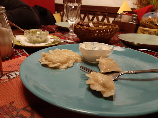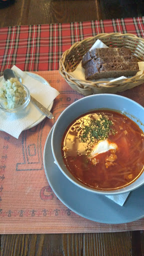 Хорошее место. На входе вас встречают, помогают раздеться и вешают ваши вещи в гардероб. Уютно. Интерьер в стиле "Вечера на хуторе близ Диканьки": роспись на стенах под хохламу и т.д. Кухня достойная. Попали на бизнес-ланч. Взял себе борщ и салат сельский. К борщу по желанию приносят смальсу (перемолотое сало с чесноком и зеленью), обалденно вкусно. Салат... Не скажу, что прям "вау!", но тоже вкусно. А от борща я остался доволен. Обслуживают быстро, приносят блюда единовременно всем сидящим за столом, а не по готовности каждому. За это огромный плюс. На 5 человек отдали 1500р. Все остались сытые и довольные. Каждый заказывал первое или второе +...