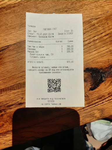 Read moreДавно мы так не заходили в кафе)) нас встретила хостес с лицом будто делает одолжение, потом пришёл развеселый официант, который выразил надежду, что наш заказ успеют выполнить. Потом нам принесли так называемый чак чак (который на деле пересушенный хворост), но не со сгущёнкой, а с мёдом. Официант стал спорить, что мы с мёдом и заказали, потом с максимально недовольным видом забрал и сказал, что переделают. Другое открытие масала — чёрный байховый чай со рандомными специями — почему-то это зовётся у них масалой. Пахлава была с каким-то странным земляным привкусом. А загадочный рахат лукум к чаю, который значится в чеке, нам и не принесли. Под конец официант спросил, что нам понравилось, вернее, не понравилось. Мы объяснили, отдельно выделив масалу, на что официант предложил добавить кипяточка))) После этих изысканных десертов нас ещё полчаса мутило. Короче, больше не придём. И всем советуем поискать другие места по крайней мере по...