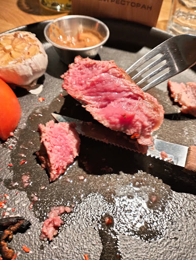 Система бронирования и электронной очереди - это жесть и глупость. Про нее в отзывах ранее все написано абсолютно точно: не дозвониться, не добронироваться, не дождаться своей электронной "живой" очереди. Администратор на стойке пытается быть вежливой, но не получается. По еде: заказали 10 блюд: чай улун листовой вкусный, борщ плоский по вкусу и не насыщенный, крем-суп сырный понравился, баклажаны в панировке - это просто крайнее неуважение к гостям (жесткий толстый кляр, похожий на скорлупу ореха, ноль вкуса в самих баклажанах), щечки вкусные, но их безумно мало и сопровождение у них крайне неудачное - никакущее пюре с недоваренной цветной капустой и пережаренным сухим луком-фри, свиные ребра барбекью холодные и сухие, утиная ножка конфи вкусная и гарнир хороший, чизкейк суховат, фисташковый рулет, напротив, слишком влажный, жидкий внутри и приторный по вкусу настолько, что не различаешь нюансы - только сахар на рецепторах, шоколадный фондан сделан правильно, но мороженое к нему подобрано плохо, без сливочного вкуса. По подаче - все было быстро, но (!) все принесли в один момент: и суп, и ребра, и баклажаны - одному гостю. Качество еды оказалось настолько разочаровывающим, что никакого смысла в повторном посещении "Быка" мы для себя не видим. Ради одной утки точно не вернемся, а все остальное легко найти в других ресторанах в гораздо лучшем качестве и исполнении. Да, дороже, но я лучше заплачу за вкусное блюдо, чем выброшу очередные 300 рублей за непонятно что. По залу: в правом от барной стойки помещении очень холодно в центральной зоне. По сервису: персонал за барной стойкой изрядно матерится, что понятно - такой беспорядок у них там творится.... Официант, которая с нами работала, - молодец, вопросов к ней нет. Невыдержанный порядок подачи блюд - это...