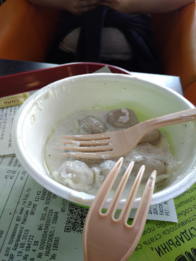 Меня тут просто взбесили. Хамоватый кассир. Заказал пельмени. Их приготовили. В то время, пока они стояли на стойке, он пикапил бабу клиентку. В это время другая кассирша, у которой клиент заказал 2 порции пельменей забрала мою порцию. И я, с чуваком которому выдали одну порцию, ждали пока приготовят его две порции пельменей. Кассир даже не сказал "извините за ожидание", а ждали мы минут 7. Ну и добило то, что в тарелке с пельменями и сметаной, пол тарелки занимает ещё и вода, которая не даёт нормально сметану...