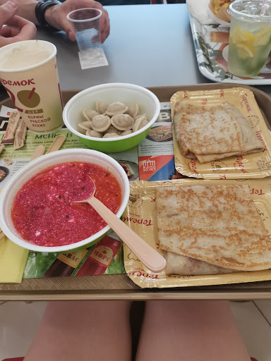 Ресторанчик быстрого перекуса со стандартным меню состоящего из вкусных и все таки русских блюд. Находиться на третьем этаже, в зоне фуд-корта, в Торговом Центре "Домодедовский". Обслуживание быстрое, персонал вежливый. В выходные и вечером в будни много народу, сложно найти...