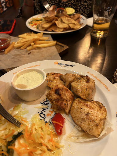 Это самое ужасное заведение где мы вообще были. Решили немного отметить ее день рождение 3.02.24 . Заказали два салата цезарь с курицей +- пойдет . Самое интересно было с пивом, заказываем крушовицу разливное, приходит официант , говорит нету, заказали бутылочное его же , приходит опять говорит нету , заказала сестра там себе уже какое то другое и его тоже не оказалось, потом уже попросили лучше узнать и сказать что есть( на минуточку это суббота 6 вечера, народу еще совсем очень мало).Шашлык из куриной грудки просто соленющий,а сестра заказала себе какой-то микс (мясной микс на гриле, или какое-то ассорти,возможно ошибаюсь) были кусочки мяса не соленые от слова совсем, люля соленые ужасно, жареный картофель на гарнир(за дополнительную плату идут овощи и этот картофель) на него смотреть не возможно не то что есть. Жареный картофель в нашем понимании это вообще не то что принесли, некоторые кружочки были просто тонкие гарелые, овощи на гриле там две дольки перца и два кружочка цукини, которые даже не поджарили (они были сырые, ну неужели даже это сложно сделать 🤦♀️). А и еще картошка фри ладно не соленая , так она и не вкусная ( Я в день посещения этого заведения почитала отзывы, но надеялась, что работу налаживают опираясь на отзывы , но как ошиблась. Сразу как пришли замерзли , окна продувает и по ногам ветерок дует , ноги в сапогах замерзли. Единственное, очень хорошая девушка официант, добрая, вежливая (не оставили чаевые из-за такого мерзкого заведения и отвратительной едой, хотя девушка не причем, советую ей...