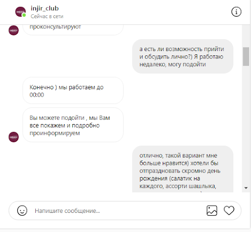 Самое ОТВРАТИТЕЛЬНОЕ место. Хуже просто некуда. В рейтинге самых плохих заведений ставлю на первое место именно "Инжир". Сто раз подумайте, прежде бронировать здесь столик. Рассказываю: В начале октября лично приезжала и бронировала столик на 29-е октября (посмотрели зал с администратором, выбрали место, всё обсудили, скрин переписки представлен на фото №1). В назначенный день приехали вовремя. При входе проверяют сумки, а у меня в рюкзаке была грязная форма, т.к. пришла сразу же с работы, не заезжая домой. Неприятно при всех доставать свои испачканные вещи, прокладки и др. Очень были удивлены тому, что посадили нас к сцене (при бронировании специально просила КАК МОЖНО ДАЛЬШЕ и был выбран последний столик ОТ СЦЕНЫ, который в назначенное время был занят другими), скрин переписки с претензией по этому поводу прилагаю фотографией №2. Находились в сети, выкладывали истории, но отвечать на моё сообщение не хотели, хоть и прочитали его. Только после 2-го сообщения получила ответ, в котором заведение не дало никаких объяснений. Было заказано ассорти шашлыков большой на компанию 6-7 человек (950/90/100 г) стоимостью 2300 рублей. И, внимание, вот как выглядит блюдо на компанию из 7-ми человек: фото №3. Вы СЕРЬЁЗНО СЕЙЧАС??? ВОТ ЭТА МАЛЕНЬКАЯ ТАРЕЛОЧКА НА 7М ЧЕЛОВЕК РАССЧИТАНА И ВЫ ДЕЙСТВИТЕЛЬНО СЧИТАЕТЕ, ЧТО 2300 ЗА ЭТО АДЕКВАТНАЯ ЦЕНА ЗА ЭТО???? Такое ощущение, что перед карантином (праздновали в последний день перед закрытием) просто остатки вынесли и всё! Была замена свинины из меню на говядину, хотя при бронировании столика я озвучивала то,что будем заказывать. Это ПОЗОР. Так же были заказаны коктейли "Черничный брамбл", в которых льда было больше, чем самого коктейля. Серьёзно, я не шучу, прям с горочкой льда бесплатного не пожалели (фото №4). Алкоголь показался мне сомнительного качества. Только после 1 стакана начался сильный сушняк, постоянно бегали к официантам за водой, в итоге принесли целый графин, который я весь и выпила.Похмелье у другого гостя началось спустя 3 часа после 2-х таких коктейлей. У меня было замечено снижение остроты зрения на правый глаз ближе к 22:30, которое продолжалось 11-13 часов, после восстановилось. Не знаю, связанно это с их алкоголем или нет, т.к. у меня не так давно была операция по коррекции зрения и колебания в остроте зрения могут быть ещё некоторое время, хоть до этого и после подобного не наблюдалось больше вообще. К остальным блюдам претензий не имею, но невооруженным взглядом понятно, что обманывают с граммовой. В честь дня рождения скидка 10% на чек, о том, что акция действующая "Инжир" подтвердил в личной переписке, но пробили без скидки, хотя знали, что это именно день рождение (неоднократно писала это им в инстаграмме, при личном бронировании это упоминала ни один раз, пришли с тематическими шариками с надписями о дне рождении, цветами и тортиком, который они должны были в конце нам вынести). После оплаты подошла к официанту с оригинальным паспортом и телефоном, в котором была переписка с ними же, девушка прочитала переписку, проверила паспорт (день рождения был день в день мероприятия) и ушла. Потом пришла и сказала,что они ничего возвращать не будут. Заплатили 5380 рублей за воздух и лёд. Ушли расстроенные, даже не остались на тортик. Это САМОЕ УЖАСНОЕ И ЖАДНОЕ ЗАВЕДЕНИЕ города Оренбурга. Хуже просто не существует. Скотское отношен