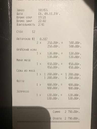 Very strange place. The quality of cuisine is one of the lowest, the personnel does not care about the clients and the prices are extremely high for such a quality and attitude. Looks like a very close place not for strangers, may be the shisha was more or less OK. The 10% tips are included, and also some extra services could be included if you are not attentive. I don’t understand why there are such high recommendations. The restaurant just stuck in 1990-s and even in the small and less developed places of Russia you never see it anymore. So if you wish to visit...