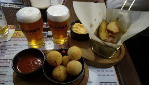 Read moreОтличный паб, удобные и стулья, и особенно диваны, суперофицианты в килтах (люди и весьма предупредительные, и с чувством юмора! Предложили четырем уставшим девушкам пересесть на столик у дивана, когда он освободился; юмор описывать не буду, сложно, просто поверьте на слово!), обстановка классная, залипаешь на детали интерьера: старинное бюро, старинный телефон, штучки для развлечения (манекен в нацкостюме с волынкой, макет камина с надписью над "очагом" Who let the dogs out), и это мы были только один раз! В почти полном заведении, то есть наверняка всё не отсмотрели. Потолок и верх стен окрашены в белый, что очень "бодрит" типичный барный полуподвал в центре. Для доступа к вайфаю нужно вбить на сайте свой номер...