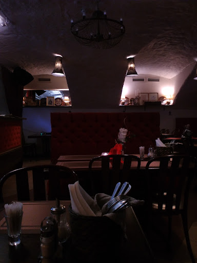 Но нас приветливо встретил официант Адам, проводил до столика, зажёг свечку, порекомендовал вино (за что отдельное спасибо, вино пришлось по вкусу), на сцену вышла девушка и запела и сразу стало очень уютно и комфортно и интерьер заиграл уже другими красками.