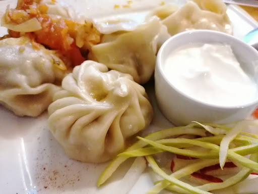 Half a block off the main drag on Nevsky, this restaurant has a casually hip, modern vibe and a nice selection of dumplings. I had the assorted vegetarian Khanum (sheets of pasta rolled with filling) and my wife had the Manti (seems to be Siberian variant on the Korean "mandu") which were meaty steamed dumplings like big pot stickers. Both were good, as was the mango/passionfruit mouse dessert cake.